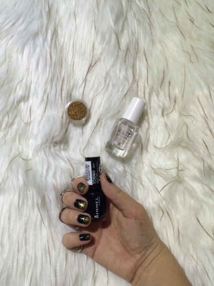 If you know me at all,  you’ll know that I am huge nail art enthusiast! If you’d like to see other nail posts that I’ve done just hit the link I love any sort of nail polish, I like plain, gel, matte, but I also love to experiment with my nails too! This gorgeous Rimmel Black Nail Polish would have been to die for on its own, but me being me, I had to add that little edge of sparkle to it! So, I decided to do something different to highlight the dark black colour.
