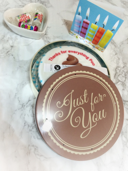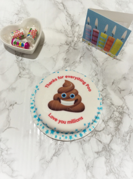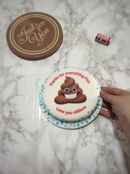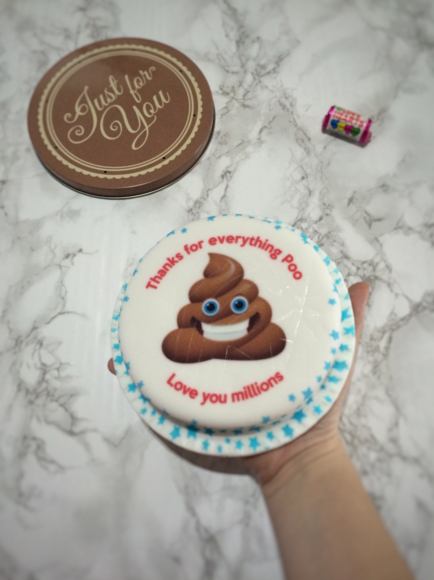 When I opened the cute little tin that showed my lovely boy who the cake was truly for I was greeted by the sweetest design (that I’d been able to design myself) and the cutest little cake! Seriously, hit the link and see how many designs they have! It took me agessss to find the right design and naturally came up with one with a poo on. I personalized the message and being the top girlfriend that I am, I dedicated my Bakerdays cake experience to the most important person in my life, my lovely boyfriend …. who I name poo. This is, of course, a prime example of just how free you are to design whatever you like on your cake! How many people have a cake with a poo emoji on?!