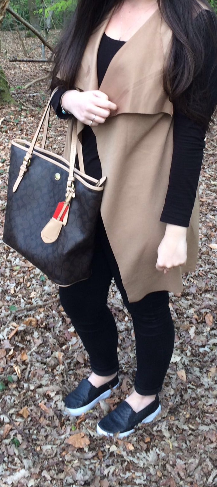 As you can see, this gorgeous piece is sleeveless so perfect for those cooler evenings as Summer starts where you can pop it over a casual look. I’ve styled mine with black top and jeans from Primark – told you I love a bargain! Gorgeous snake skin pumps from Primark (again) a gorgeous bangle from Romwe (another bargain for bloggers and fashion) and my amazing Coach handbag. Not such a bargain at around £300.