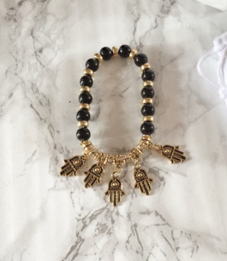 This gorgeous gold Eye of Hamsa charm bracelet is perfect to be matched with the tassels look and a gorgeous brown tassel bag! Supposed to promote peace – this gorgeous trinket type bracelet sings a gorgeous tune each time you move!