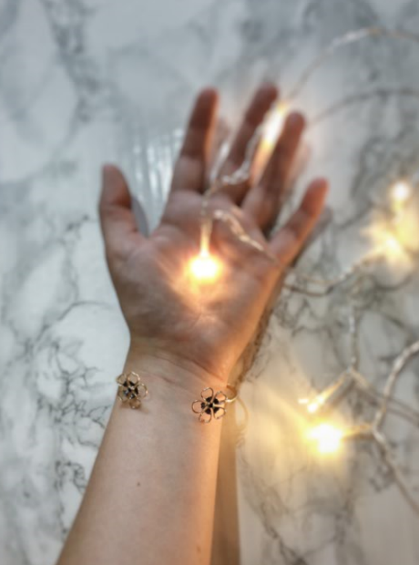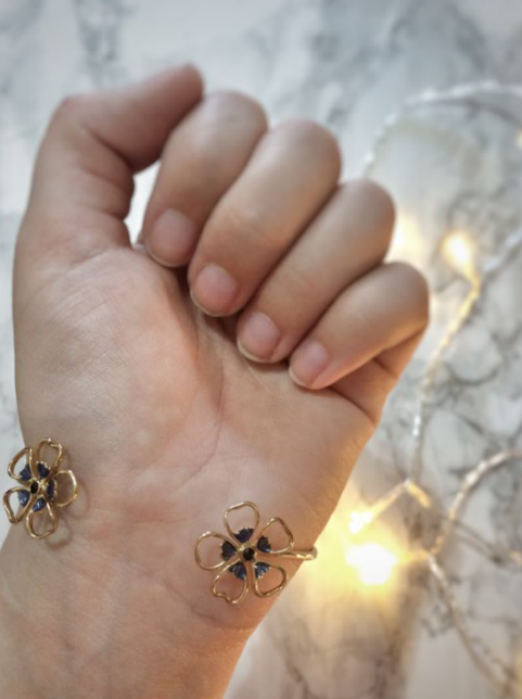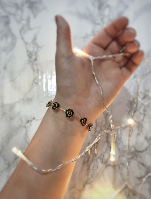 For me, on the brink of new and exciting adventures, these elegant black flowers represent saying goodbye to those past stresses and finding something so beautiful and unique about it all. The design and sturdiness of such a small bracelet is the story of me, a small person about the embark on the big wide world, scared but completely held together by one strand of something strong.