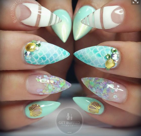So much love for all these styles. The Mermaid style is actually very diverse and I am so excited to try out some of these designs. There are lots of wicked things online right now that will help achieve these looks too and for all for reasonable prices. Los of these looks can be achieved with the products you probably already have at home but stencils and the little gems and shells can be found online and I find Born Pretty and Amazon to be perfect for them!