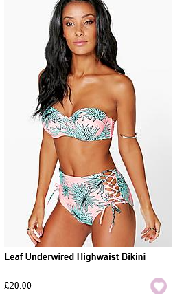 These three gorgeous bikinis and one pieces from Boohoo are so perfect for flaunting your best bits! The first Boohoo bikini achieves the hourglass look with the help of the cut out elements. It is also brilliant for us fuller girls as the cups are really supported and reinforced by the shaping of the bikini – great for fashion and great for support!
