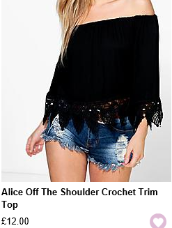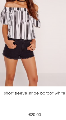 So, first up we have a staple favourite online brand of mine … Boohoo. A massive favourite of mine when it comes to the latest trends and also a brand that makes my bank balance happy! This one will not break the bank! So, as you can see from the prices of these gorgeous bardot tops, I’ve picked some gems that will boost your summer wardrobe and ensure you can still afford cocktails to celebrate!
