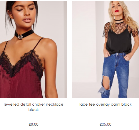 Gothic Glam is everything you can lust over on the run up to Halloween and not look like you’re constantly in fancy dress! Missguided executes it so perfectly with the right mix of blocked black colours, lace and silks. Chokers are going to be massive this coming season so getting your hands on one is a no brainer for any outfit choice – gothic glam or not!